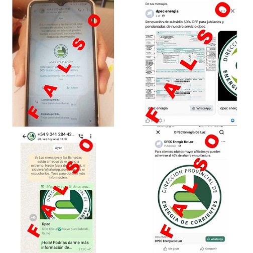 La Dirección Provincial de Energía de Corrientes (DPEC) reiteró su alerta a la comunidad ante la circulación de cuentas falsas en redes sociales que ofrecen descuentos irreales de hasta el 50% en las facturas de energía, con el objetivo de obtener datos personales de los usuarios.